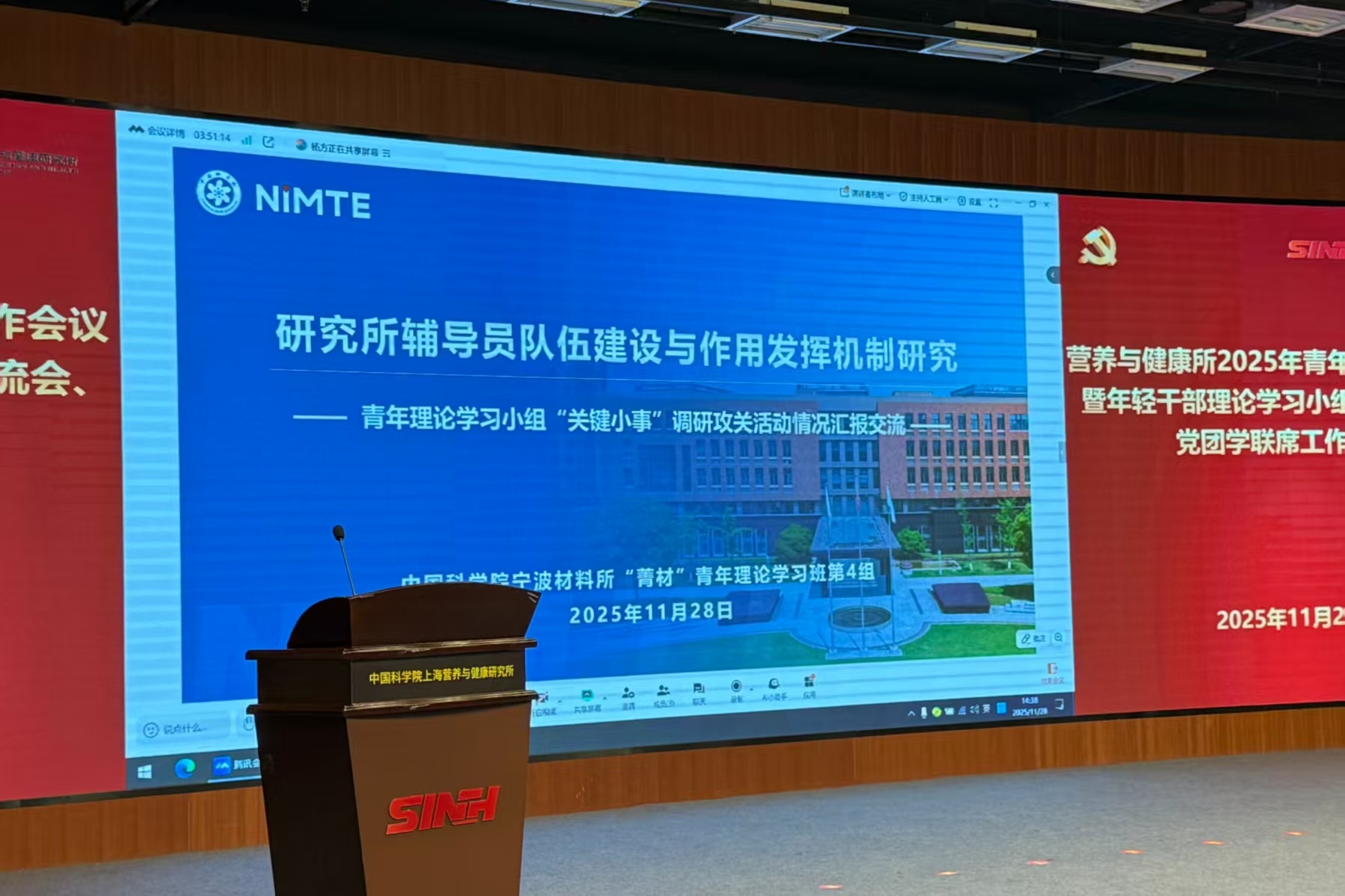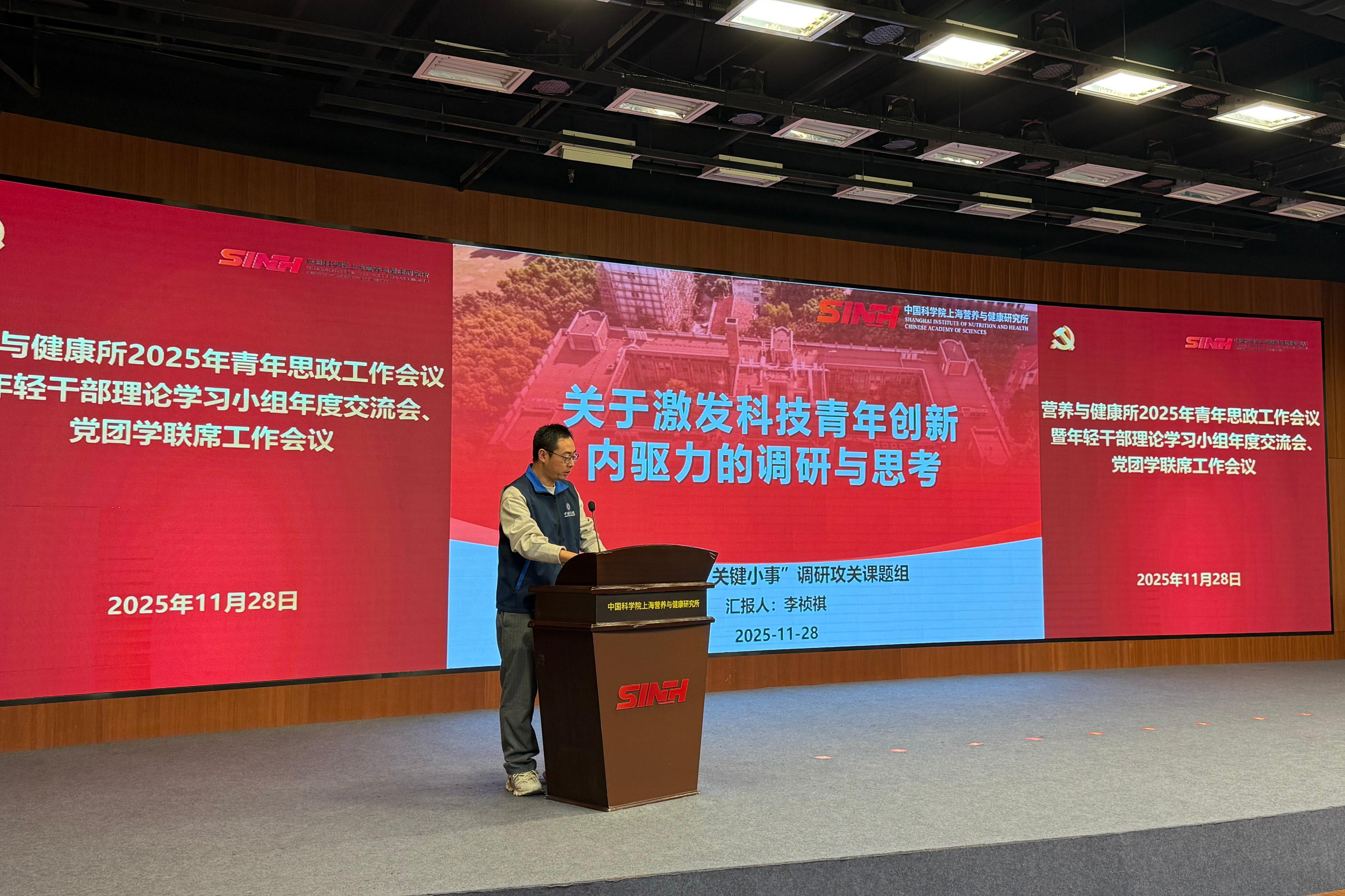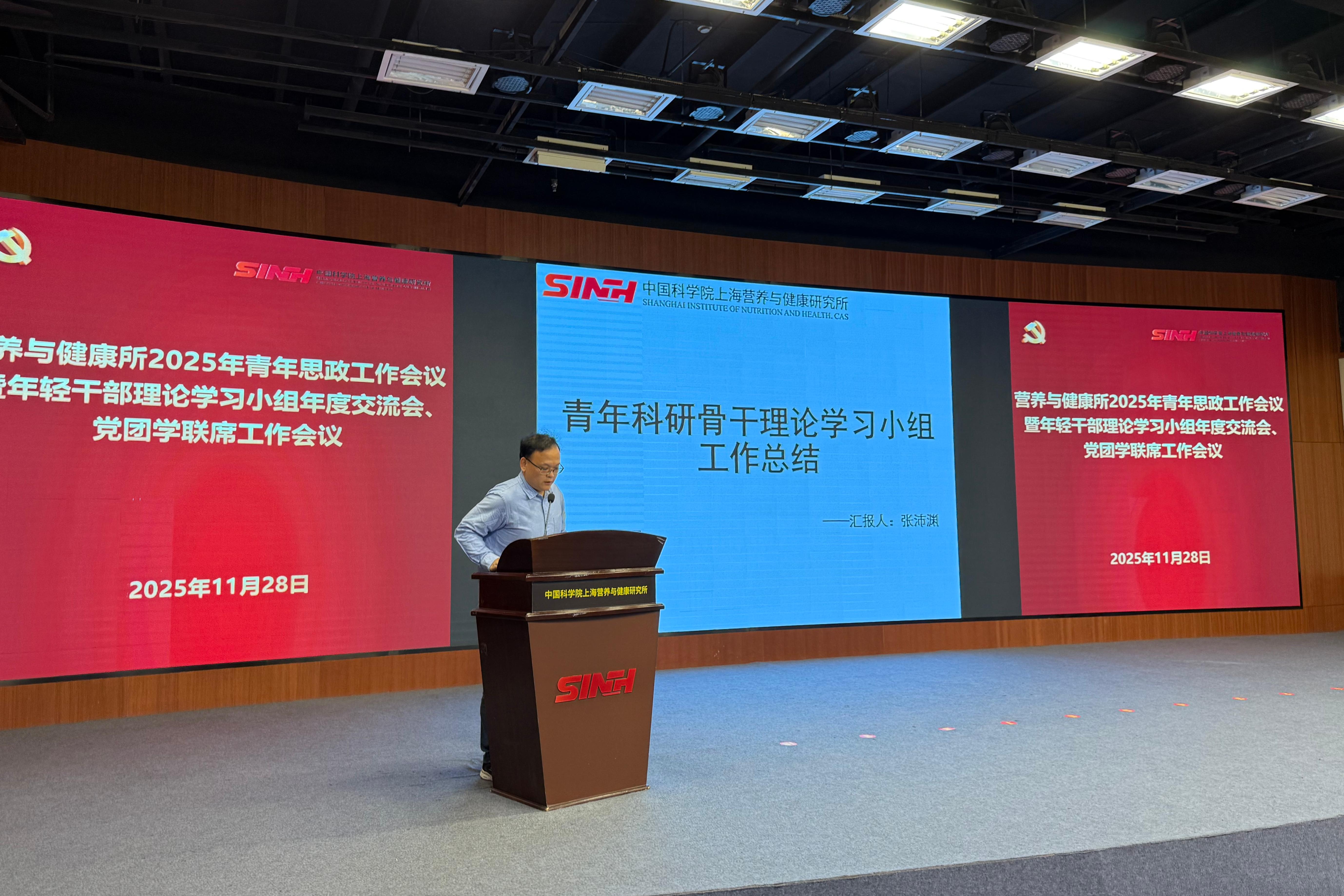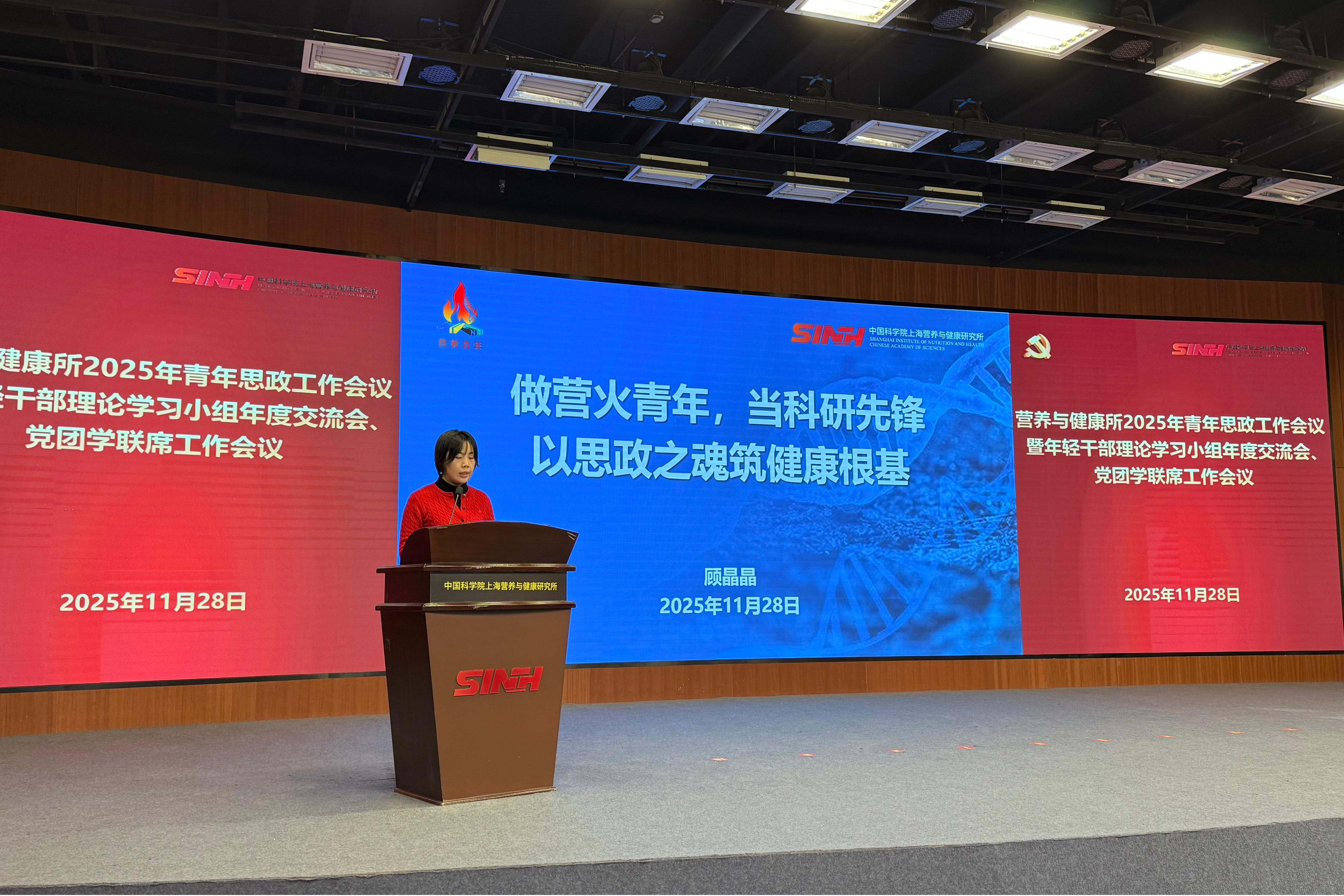 11月28日下午,為進一步推動青年干部和科研人員在研究所高質(zhì)量發(fā)展新征程中展現(xiàn)新?lián)敗崿F(xiàn)新作為,中國科學院上海營養(yǎng)與健康研究所召開2025年青年思政工作會議暨黨團學聯(lián)席工作會議。營養(yǎng)與健康所黨委書記瞿榮輝、紀委書記曹永、相關(guān)職能部門和黨組織負責人、輔導員代表、各支部青年委員、青年理論學習小組組長及研究生代表近50人參會。
